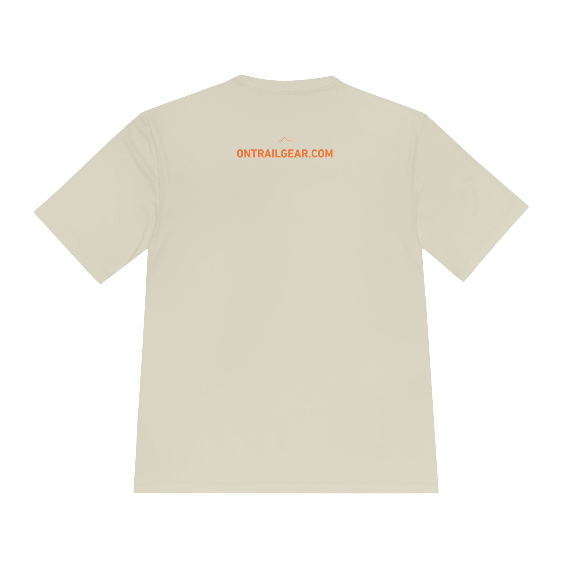 Stay cool and dry during early morning runs with this Unisex Moisture Wicking Tee. Featuring the phrase 'On Trail Find Your Strong Here', this Dri Fit tee is perfect for fitness enthusiasts and outdoor adventurers. Great for running, hiking, or any active lifestyle.