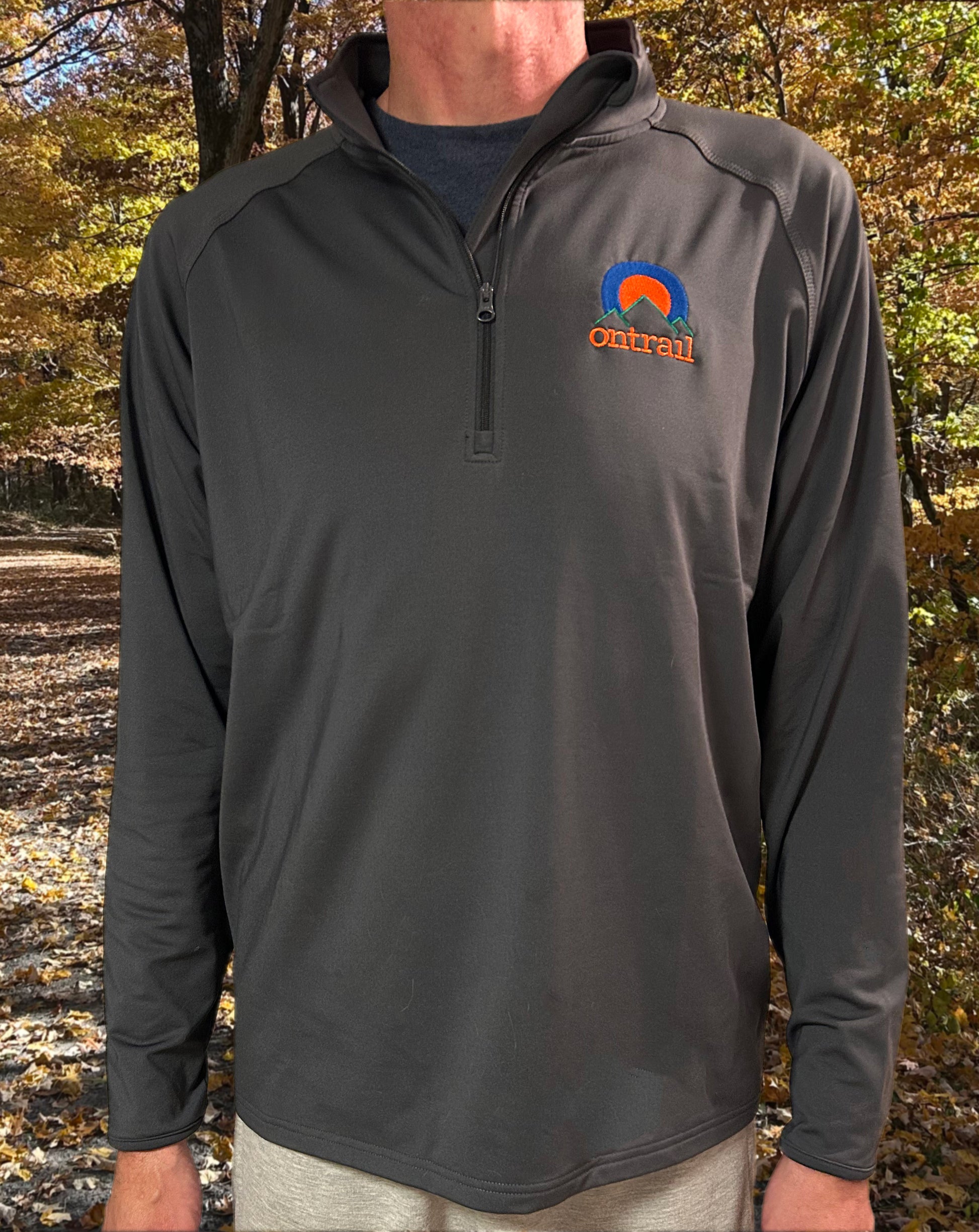 Quarter-Zip Pullover - Cool Fall/Winter Morning Runs Embroidered Top